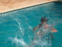 ’s Morgens wakker worden in het zwembad dat is heerlijk; Bennie en Bonnie de honden krijgen er ook niet genoeg van. Het vermoeden is dat deze aan het eind van de week ook wel op te dweilen zijn.