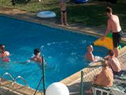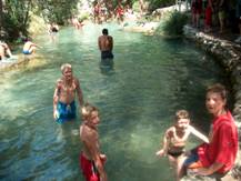 Om 4 uur kwamen wij aan in Prayssac. Snel de tenten opgezet en naar Agnes en Henri vertrokken, waar ook Loes, Rick, Bram en Simone waren. Een prima plekje, van alle gemakken voorzien, in de buurt van Tourniac. Heerlijk spaghetti gekookt en gegeten. En er moest natuurlijk ook weer gezwommen worden. Ik weet niet meer waarom, maar Tante Agnes moest met kleren en al in het water en deed mee aan de “miss wet t-shirt verkiezing”. Na een beetje gepraat en gedronken te hebben reden wij weer terug naar de camping.