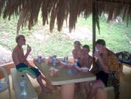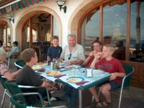 Net onder het eten koken komen er een paar bekende gezichten om de hoek bij onze tent. Het zijn René en Yvonne van der Zwaan met hun kinderen Marcel, Laurenzo en Maarten. Eerst maar even het eten afmaken. Echt een latertje geworden maar de chef-kok had niet eerder zin. Daarna even een biertje of limonade drinken op het terrasje bij de familie van der Zwaan.