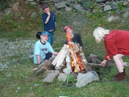 Warempel wij komen zelfs om zeven uur al aan bij Eric en Graham die in het huis van Henk zitten. Het weer is prettig en de kinderen gaan meteen vuurtje stoken en Pa Paul gaat een glaasje Gammeldansk drinken met Eric. Lekker lang opblijven omdat het natuurlijk vakantie is.
