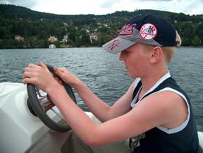 Ondertussen klaart het weer op en gaan wij toch nog even varen met een motorbootje op het meer.