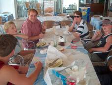 ’s Avonds gingen wij nog met Martin en Renée een biertje drinken bij een strandtentje op uitnodiging van de Roemeense bouwvakker die bij Martin aan het werk was. Het was al goed donker toen wij weer vertrokken.