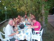 Net onder het eten koken komen er een paar bekende gezichten om de hoek bij onze tent. Het zijn René en Yvonne van der Zwaan met hun kinderen Marcel, Laurenzo en Maarten. Eerst maar even het eten afmaken. Echt een latertje geworden maar de chef-kok had niet eerder zin. Daarna even een biertje of limonade drinken op het terrasje bij de familie van der Zwaan.