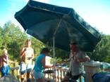 Om 4 uur kwamen wij aan in Prayssac. Snel de tenten opgezet en naar Agnes en Henri vertrokken, waar ook Loes, Rick, Bram en Simone waren. Een prima plekje, van alle gemakken voorzien, in de buurt van Tourniac. Heerlijk spaghetti gekookt en gegeten. En er moest natuurlijk ook weer gezwommen worden. Ik weet niet meer waarom, maar Tante Agnes moest met kleren en al in het water en deed mee aan de “miss wet t-shirt verkiezing”. Na een beetje gepraat en gedronken te hebben reden wij weer terug naar de camping.